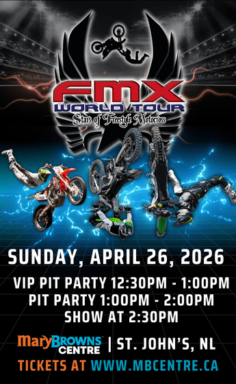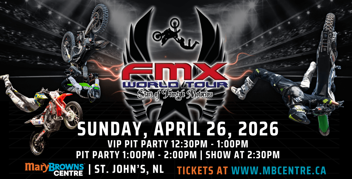 Join us as the FMX WORLD TOUR takes over Mary Brown’s Centre on April 26th at 2:30pm with jaw-dropping jumps, gravity-defying tricks, and non-stop excitement for all ages! Feel the roar of the engines, the rush of adrenaline, and the thrill of watching FMX riders soar through the air in an electrifying show.